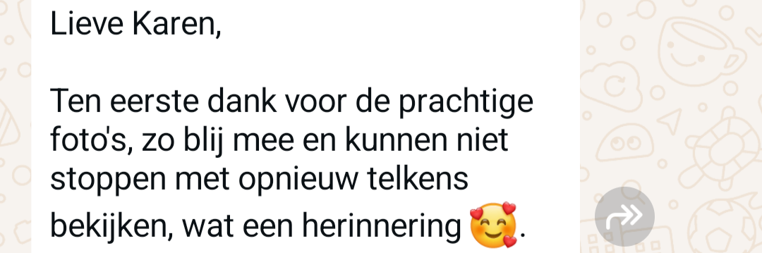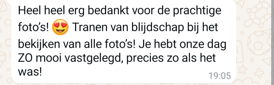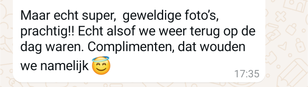 gehad. Ik ben blij met de foto’s. Ze zijn prachtig en ik krijg van veel vrienden en kennissen
