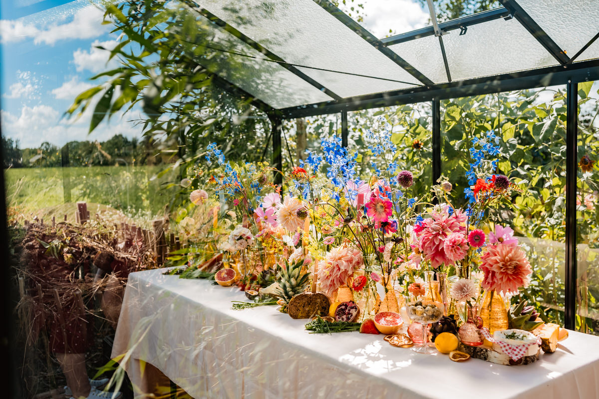De ceremonie kan plaatsvinden in de antieke druivenkas, geschikt voor maximaal 60 personen, of in de Flinkefarm. Bij mooi weer is het mogelijk om de ceremonie buiten te houden.